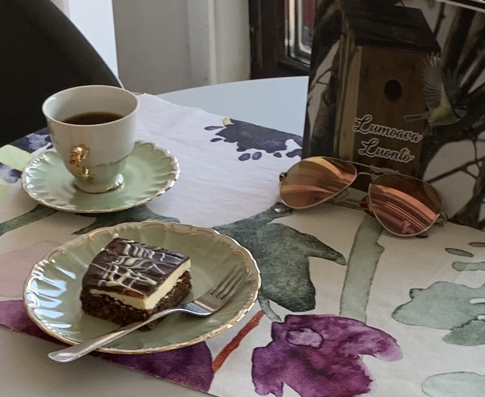 Hyvää kahvia, paikanpäällä tehtyjä leivonnaisia ja aivan loistava paikan emäntä! Täällä on heti kuin kotonaan